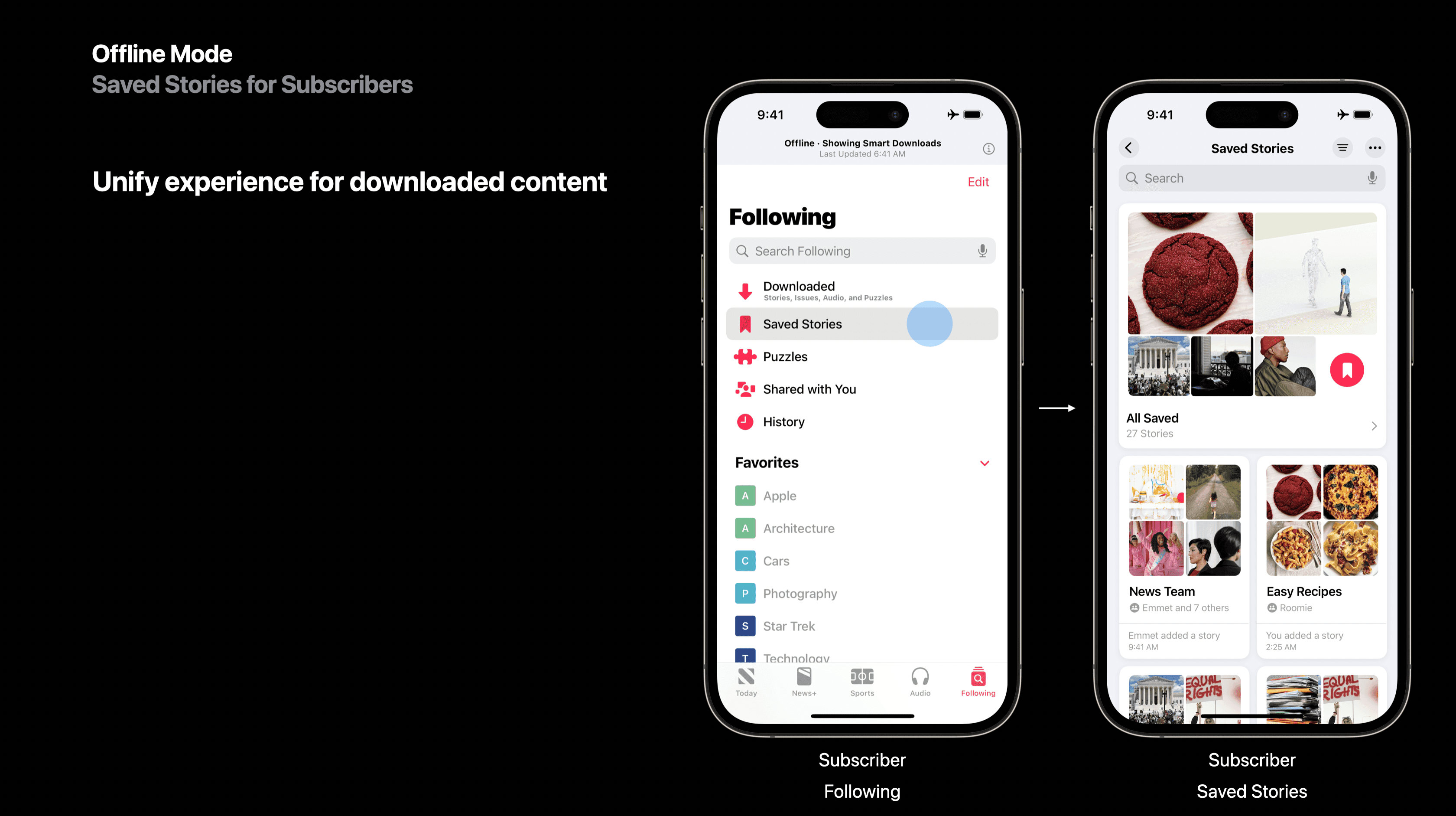 Offline Mode was a feature that was planned for the next iOS release. I partnered with Jay Robinson, Product Design, and Paul Young, Product, to propose that "Saved " should be included in Offline Mode and help the algorithm learn the types of articles that should be included in Offline Mode.
