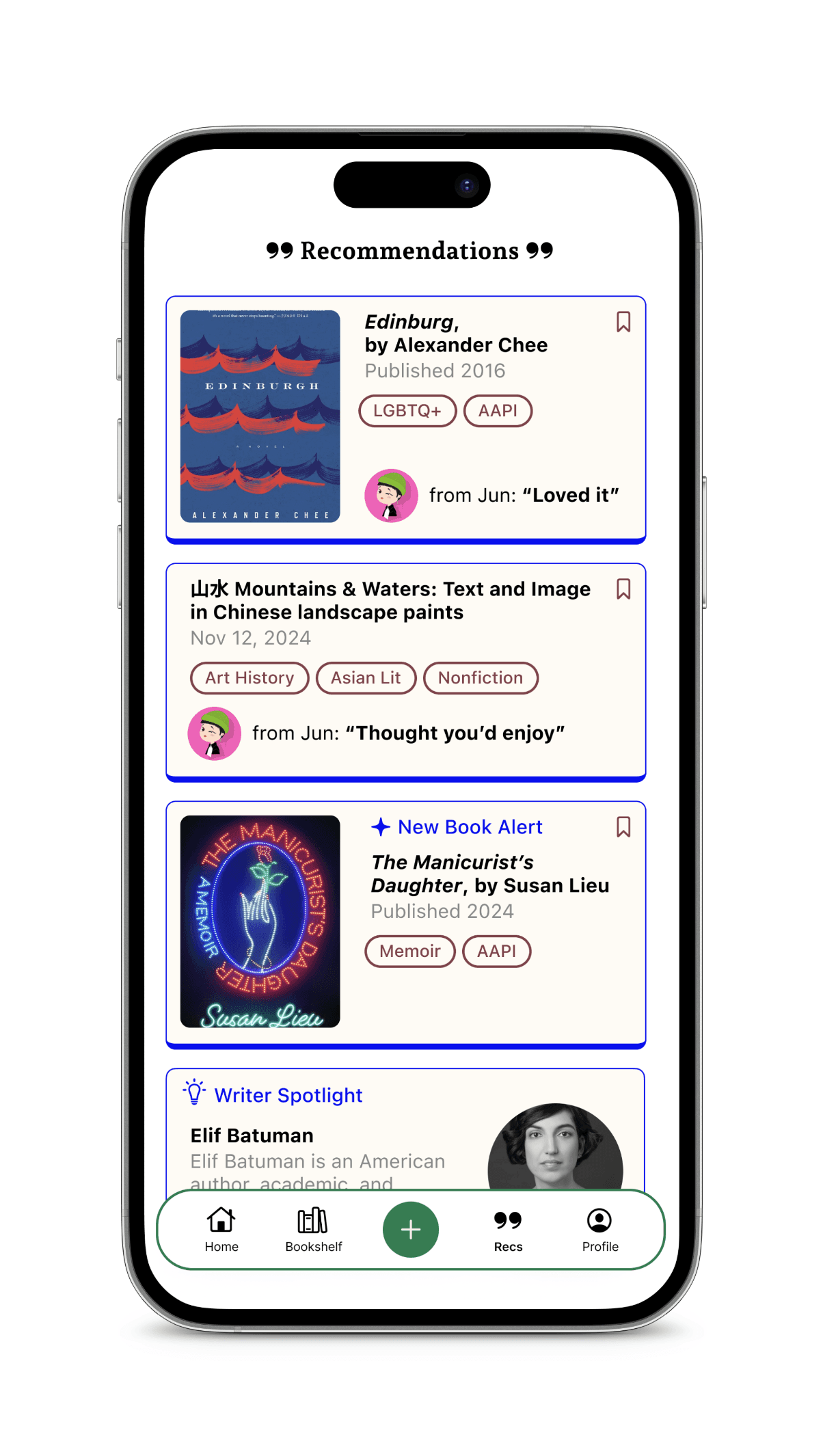One thing my friends and I DIDN’T want was for Yu & Read to become a social media app. So, I defined social interactions as “recommendations” to limit how users can interact with each other.